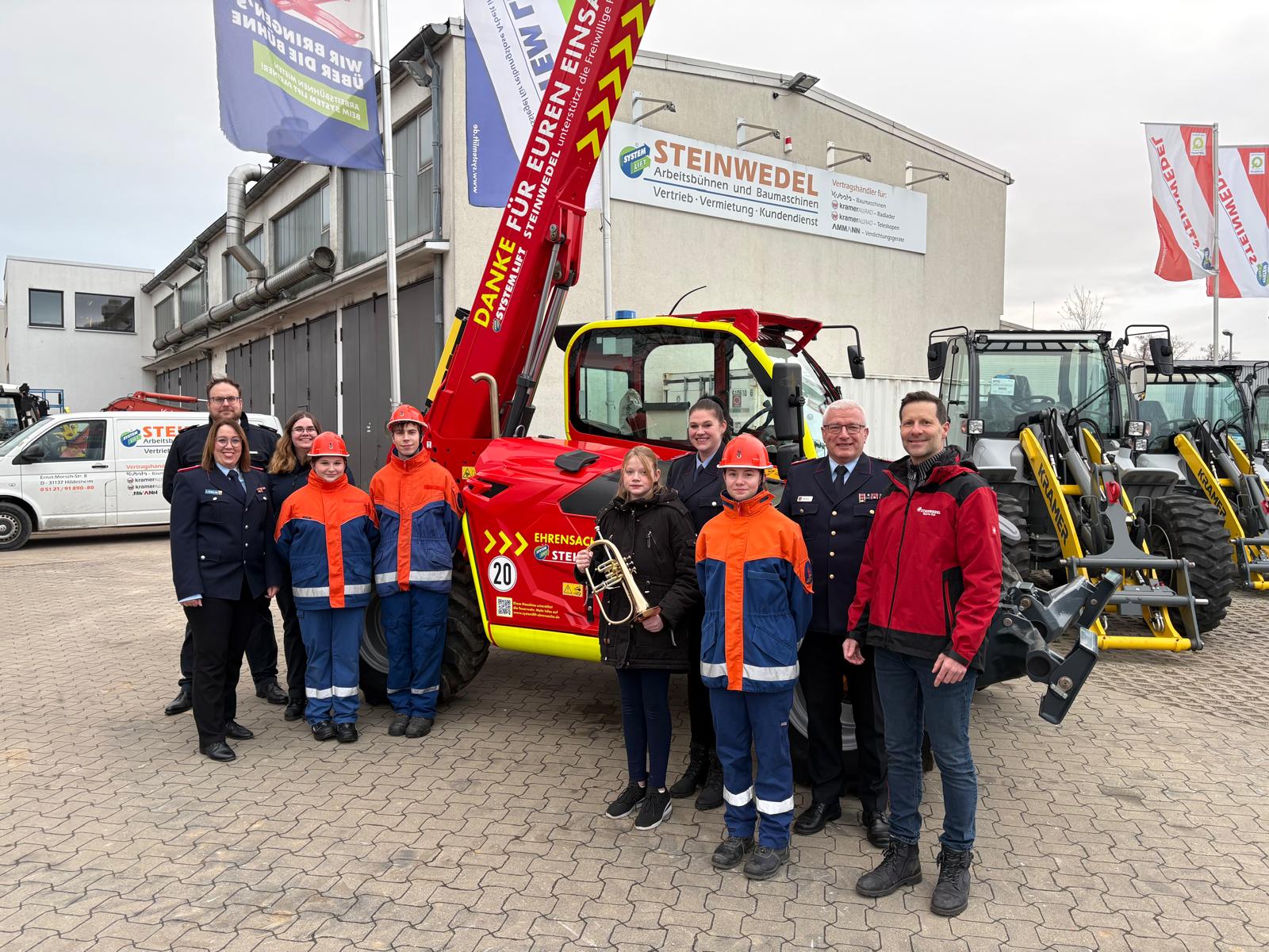Nach dem Weihnachtshochwasser 2023/2024 kam bei der Firma Steinwedel – Baumaschinen in Hildesheim die Idee auf, insbesondere die Arbeit der Jugendfeuerwehren und der Jugendmusikzüge der Feuerwehr zu unterstützen. Dazu wurde ein Teleskoplader in auffälligem Rot mit einem Werbeaufdruck für die Feuerwehr versehen und dienst als Vermietfahrzeug nun zusätzlich als Werbeträger für die Feuerwehren. Weiterhin wird das Fahrzeug bei Feuerwehrveranstaltungen als z.B. Fahnenträger unentgeltlich zur Verfügung gestellt.