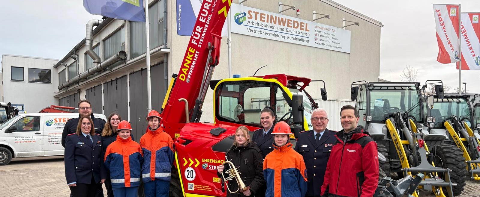 Nach dem Weihnachtshochwasser 2023/2024 kam bei der Firma Steinwedel – Baumaschinen in Hildesheim die Idee auf, insbesondere die Arbeit der Jugendfeuerwehren und der Jugendmusikzüge der Feuerwehr zu unterstützen. Dazu wurde ein Teleskoplader in auffälligem Rot mit einem Werbeaufdruck für die Feuerwehr versehen und dienst als Vermietfahrzeug nun zusätzlich als Werbeträger für die Feuerwehren. Weiterhin wird das Fahrzeug bei Feuerwehrveranstaltungen als z.B. Fahnenträger unentgeltlich zur Verfügung gestellt.